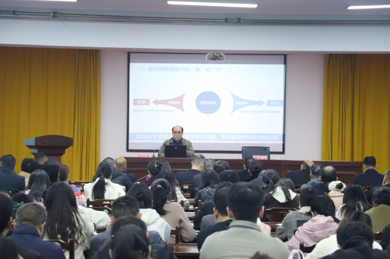 孙训华老师以《青年教师如何实现课堂“教”与“学”的双向奔赴》为题,聚焦教育本质,结合自身丰富的教学实践与竞赛经验,从三个维度展开系统讲解:一是深刻阐释课堂教学中“教”的引领作用与“学”的主体地位,明晰教育根本逻辑;二是围绕“双向奔赴”的实践路径,提出“教师员工化”“课堂设计化”理念,强调基于学情与内容核心实现精准教学;三是以“热爱课堂、深挖学情、强化设计”为主线,分享了自身扎根教学一线的实践心得,传递出深厚的教育情怀与扎实的教学智慧。