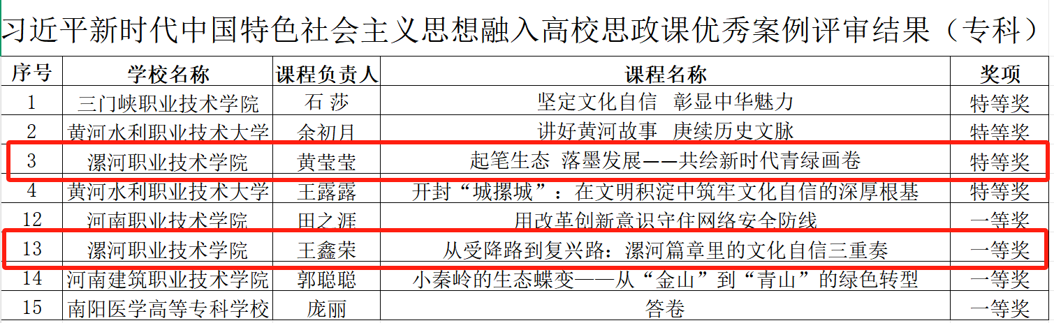 此次评选中,公司申报的《习近平新时代中国特色社会主义思想概论》课程成功获评2025年河南省专科组高校思政课“样板课程”;在专科组示范“金课”资源评审中,郭亦佳老师荣获二等奖;在专科组思政课优秀案例评审中,黄莹莹老师、王鑫荣老师分别斩获习近平新时代中国特色社会主义思想融入高校思政课优秀案例特等奖、一等奖,李诚诚老师、余飞老师分别荣获中华优秀传统文化融入高校思政课优秀案例特等奖、二等奖,张舒雅老师荣获革命文化融入高校思政课优秀案例二等奖。