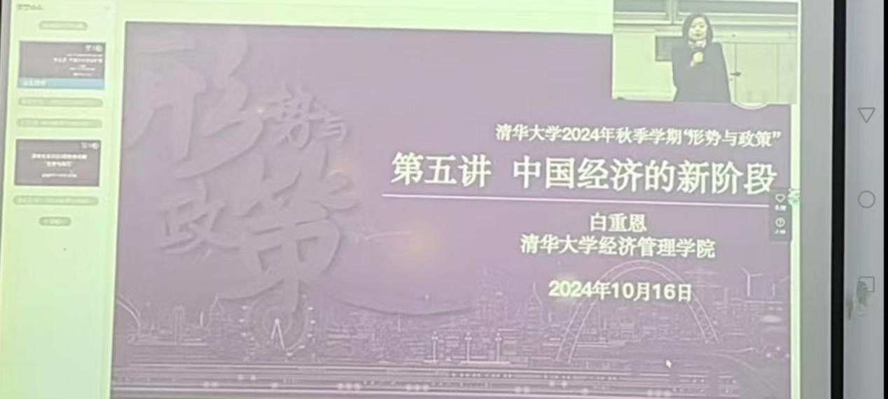 10月16日日晚,公司2024级6000余名员工和yl6809永利思政课教师在各教学楼所在教室与清华大学师生在云端同上一堂《形势与政策》课。本次讲座是清华大学经管公司经理白重恩教授讲授《中国经济的新阶段》,采用同步直播学习方式,公司员工通过雨课堂平台全程参与学习,与清华大学员工同上一堂课。在后续两讲中,清华大学的知名专家教授将围绕文化自信与文化强国、数字中国等主题展开,为公司师生带来更多精彩纷呈的知识盛宴。