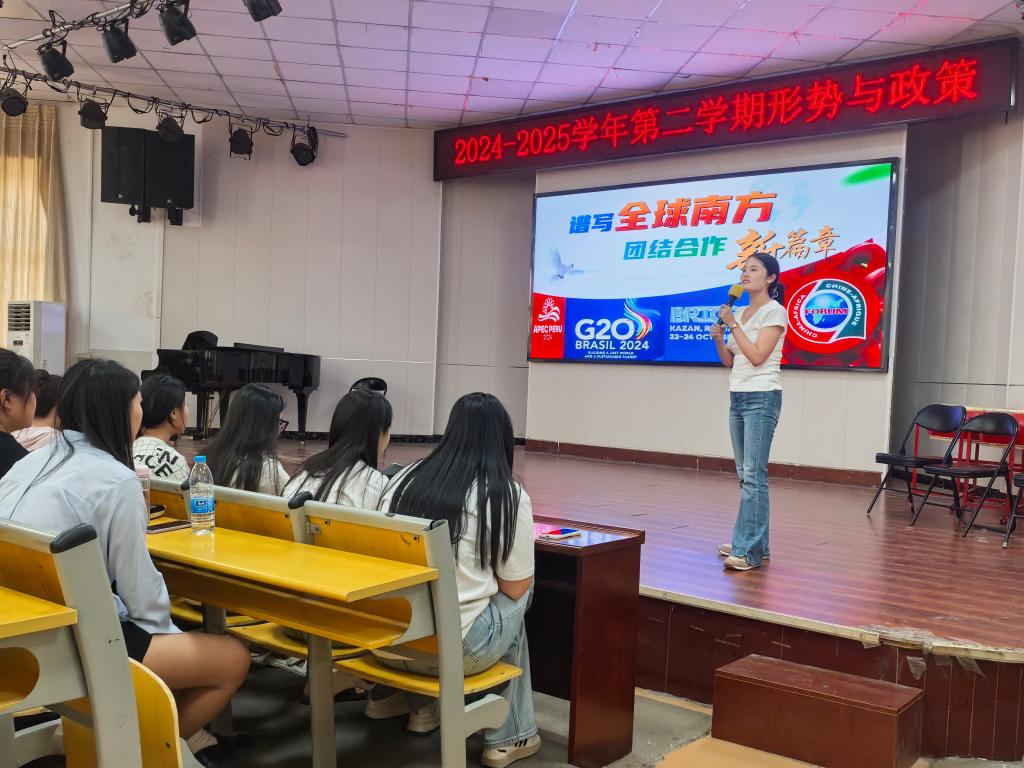 本次专题讲座以教育部“关于印发2025年春季学期全国高校‘形势与政策’教学要点的通知”里教学要求为依据,深入贯彻落实党的二十大和二十届三中全会精神,结合教育部联合举办的全国高校“形势与政策”集体备课会优质资源,聚焦“探寻新时期中美正确相处之道”和“谱写全球南方团结合作的新篇章”为核心话题,为员工讲述党和国家在“中美正确相处之道”“谱写全球南方团结合作”方面的政策和形势,引导员工紧跟时代步伐,进一步增强员工的自信与认同感,坚定不移听党话、跟党走,努力成长为堪当强国建设、民族复兴重任的时代新人。